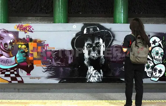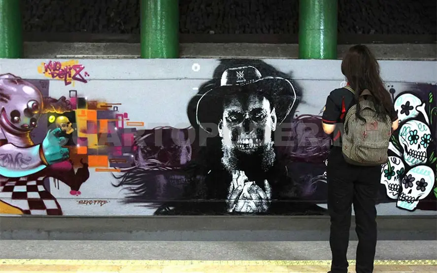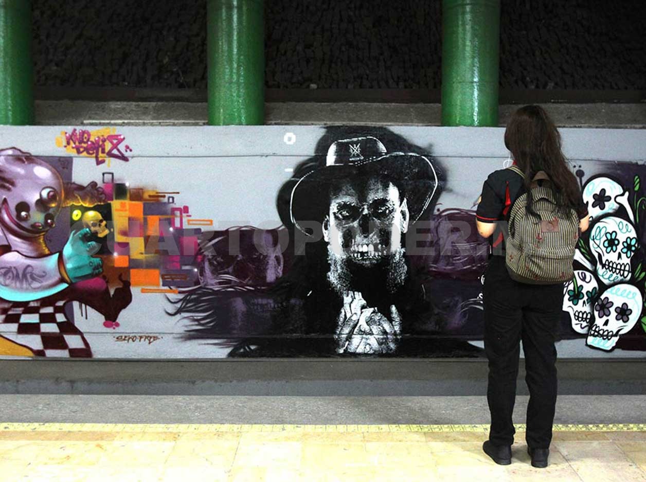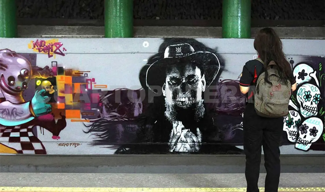 Durante cuatro días, en la estación Cuauhtémoc de Sistema de Transporte Colectivo Monterrey, conocido como “Metrorrey”, los artistas del aerosol realizaron su trabajo el cual quedó inmortalizado en el andén.