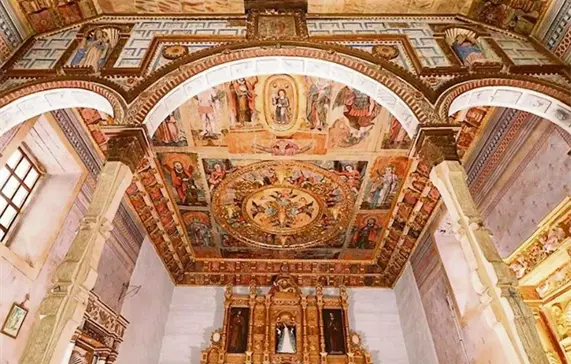 Lelo de Larrea comenta que similar a lo ocurrido en estos retablos, durante la intervención de la cubierta horizontal, se observó que esta fue objeto de una remodelación durante los años 40 del siglo XX, cuando se le aplicó un repinte general de pintura blanca, con diseños en azul, “una redecoración que provocó la alteración de la fisonomía del lugar”.