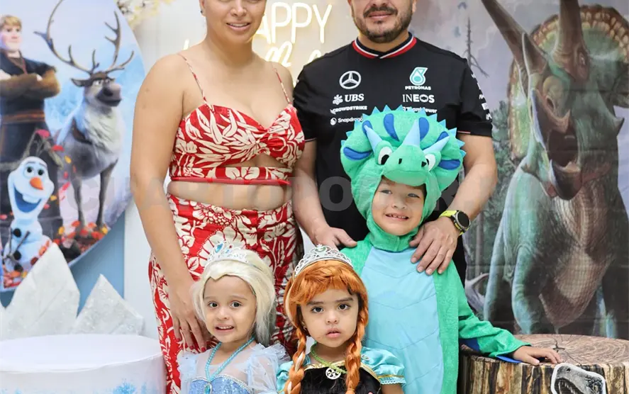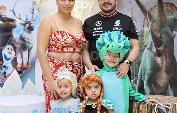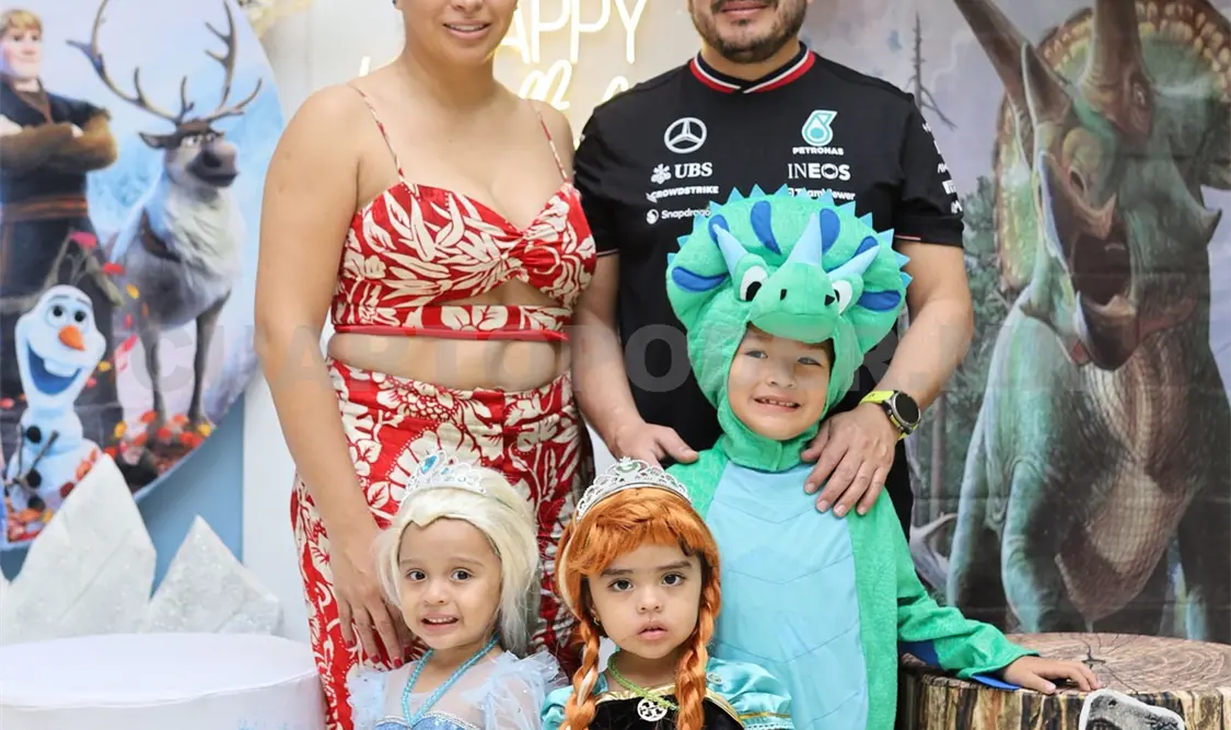 Cristóbal, Bárbara y Grecia disfrutaron su fiesta temática de Jurassic Park y Frozen, organizada por sus papás con mucho amor. Todos sus amiguitos llegaron a disfrutar delicioso bocadillos, juegos y mucha diversión. Todos se reunieron alrededor de los cumpleañeros para romper las piñatas y cantarles “Las mañanitas”
