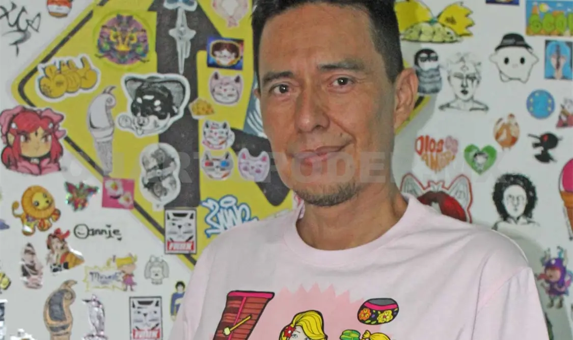 De igual forma, refieren que cuenta con una trayectoria de más de 30 años produciendo pinturas, grabado, grafiti, stickers y playeras, además de obra en serigrafía. Todo esto desde su centro de trabajo, conocido como “a Casa Azul Tienda Galería, en dónde también están su estudio y su taller.