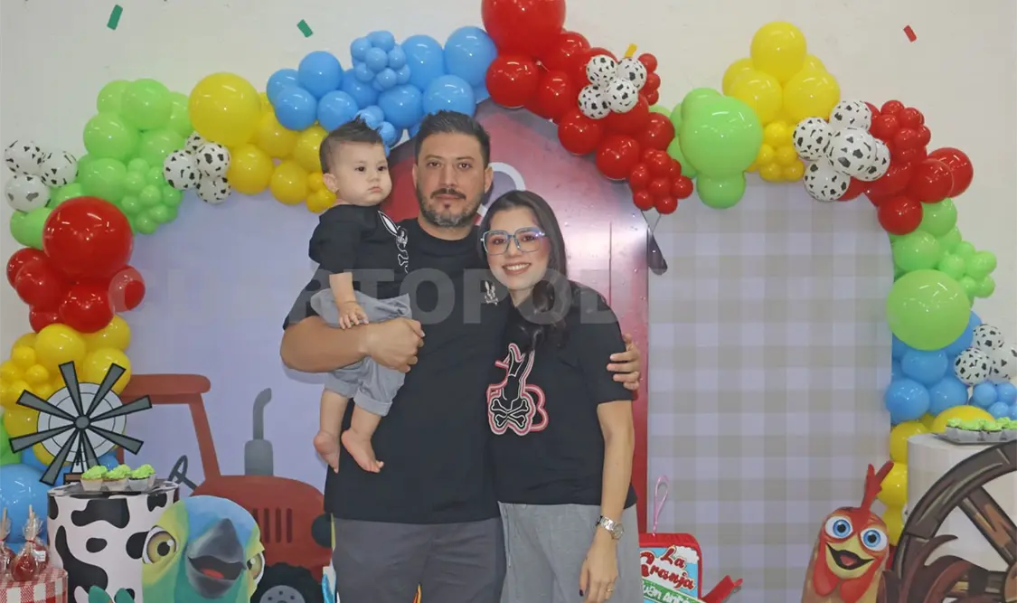 Una divertida piñata vivió el pequeño José Antonio con motivo de su primer cumpleaños. La temática elegida fue la de La Granja de Zenón, que lleno de color y alegría la celebración. Sus familiares y amiguitos lo acompañaron para disfrutar de juegos, dulces, sorpresas y un ambiente muy especial preparado para festejar a lo grande. Entre risas y abrazos, todos entonaron “Las mañanitas” y compartieron la emoción de su primer año lleno de amor y bendiciones