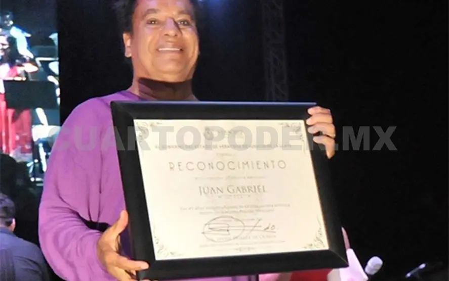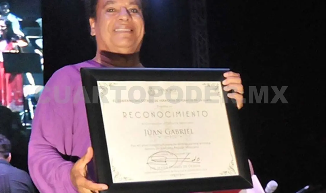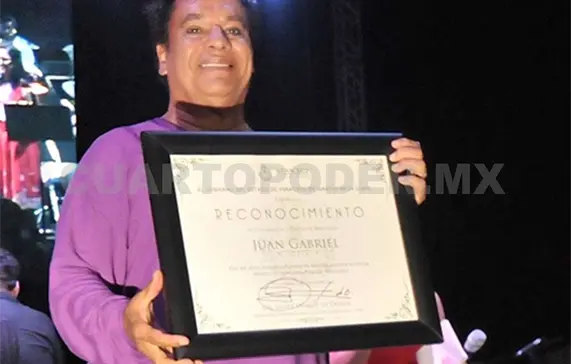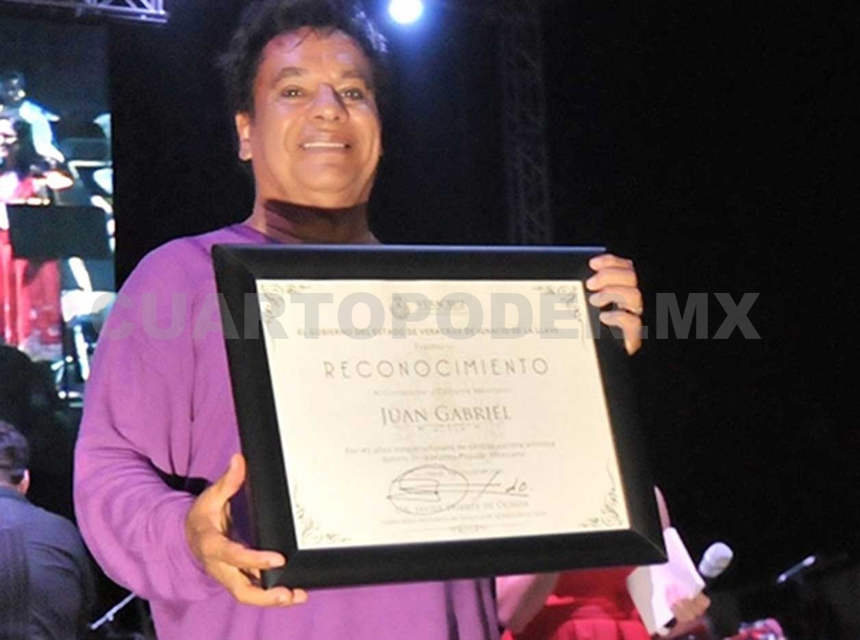 El cantautor Juan Gabriel recibió la medalla Agustín Lara y las llaves de la ciudad en Tlacotlalpan, en reconocimiento por sus 45 años de trayectoria musical.