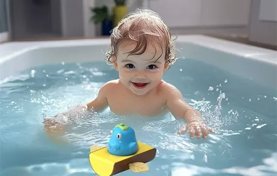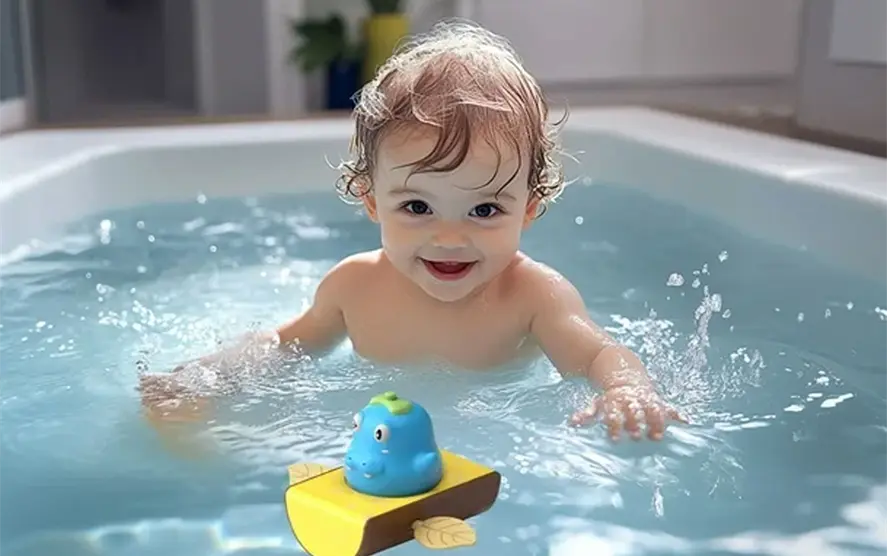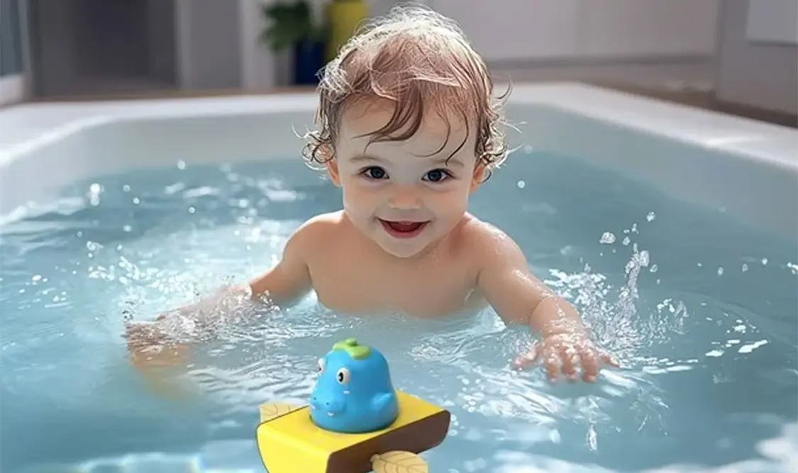A los bebés y niños pequeños les encanta jugar con agua; y moverse en el agua es una experiencia sensorial completamente diferente para los pequeños. Aunque puede parecer que solo están salpicando agua en todas partes, el juego acuático tiene muchos beneficios. El agua agrega resistencia, por lo que cuando los niños hacen movimientos en el agua, ya sea aplaudiendo o pateando sus piernas, esto ayuda a desarrollar su coordinación y fuerza.
