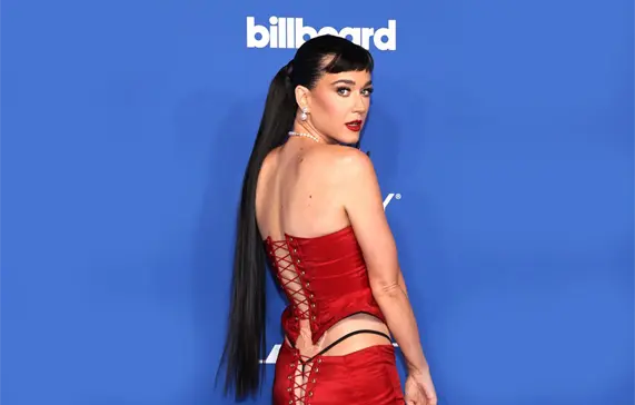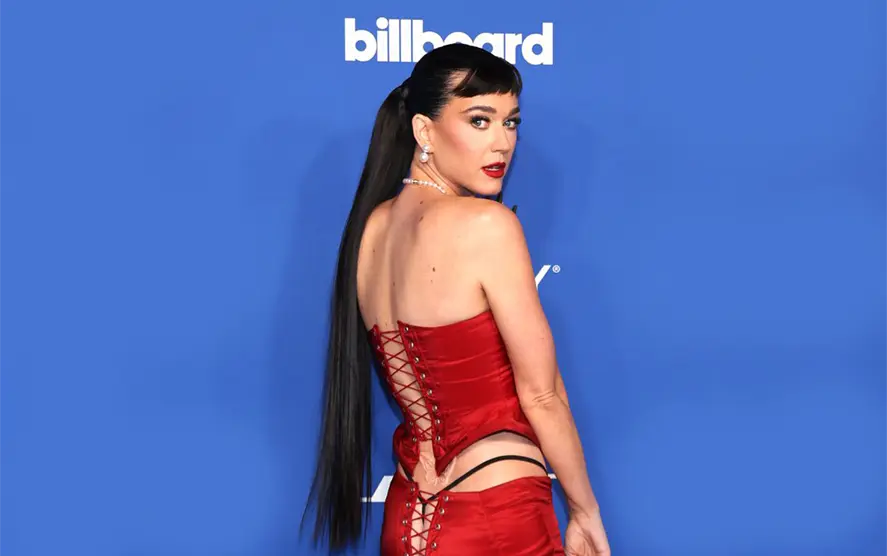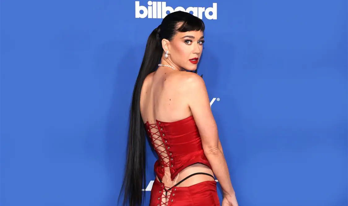 Sonriente y con unos altos tacones, es como apareció Katy Perry en la alfombra roja de los Billboard Women in Music, su vestido carmesí y corsé, ambos atados con nudos en la parte posterior, dejaron completamente al descubierto su trasero.