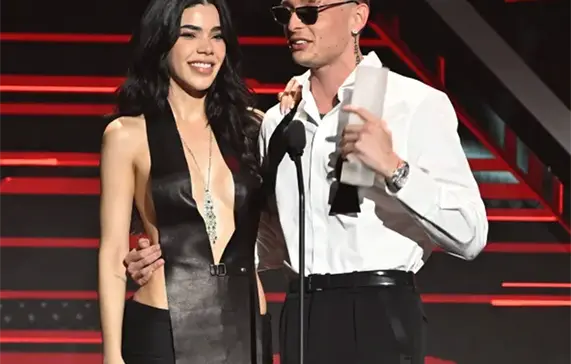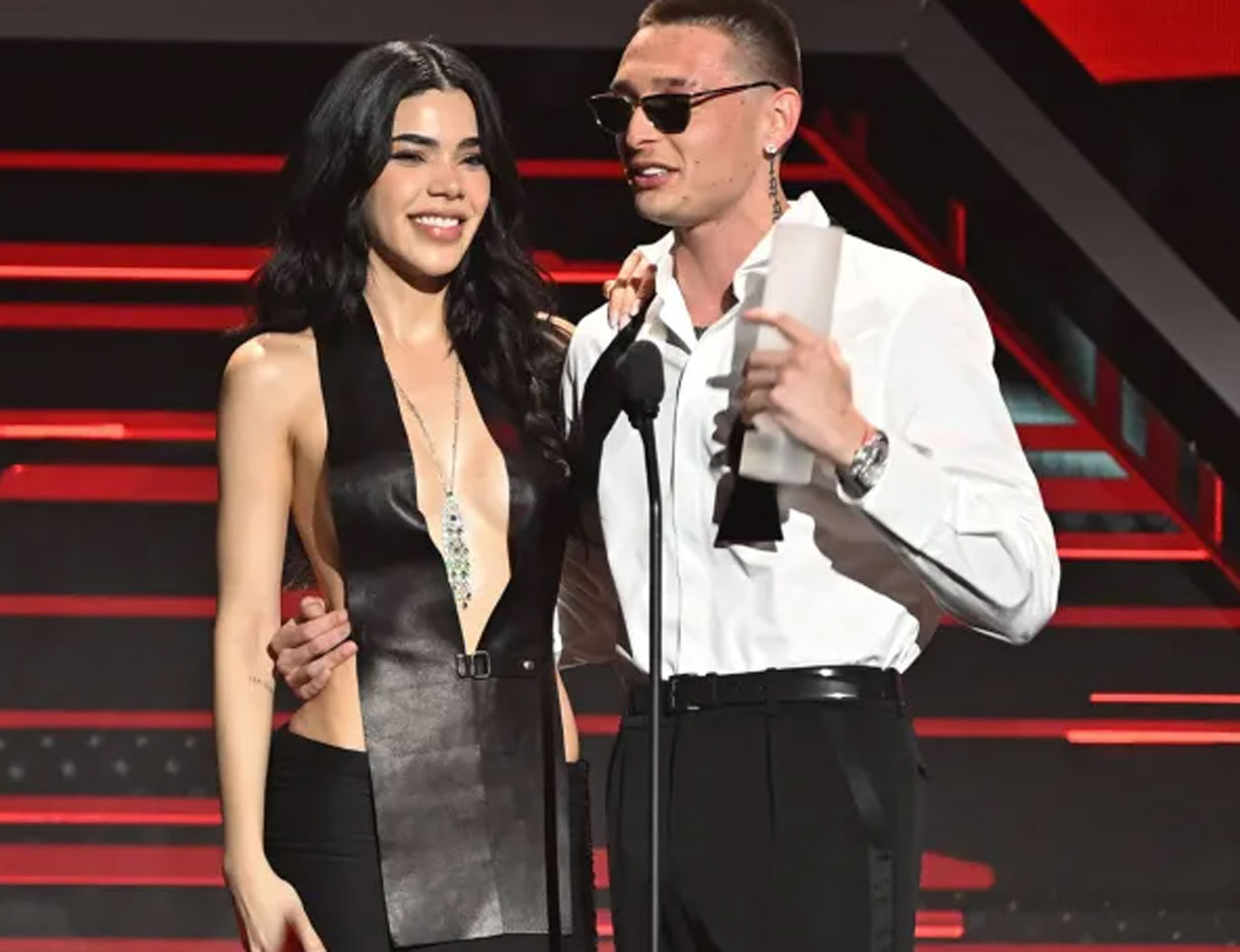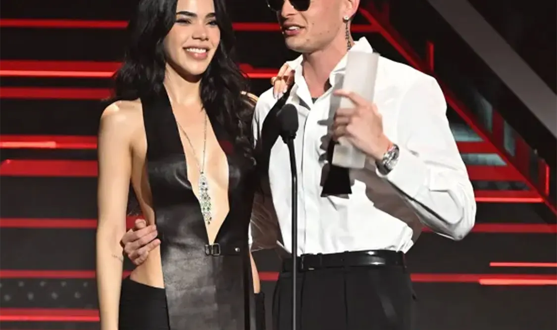 Peso Pluma fue sorprendido al ver que su novia Kenia Os le entregaría el Premio Billboard Vanguardia por su innovación y contribución al crecimiento de la música mexicana a nivel global. En cuanto subió al escenario, la pareja se dio un apasionado beso después de que ella lo anunciara con bombo y platillo y le dijera “mi amor”. “Esto es una encrucijada; yo no sabía que ella me lo iba a dar”, expresó emocionado. “Estoy contentísimo de que tú me lo hayas dado, amor… Esta bella mujer que me ha hecho un mejor ser humano, un mejor novio, un mejor jefe; un mejor todo”, dijo.