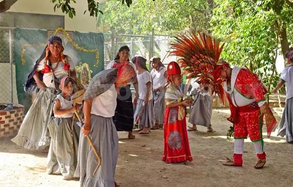 Una clara muestra es la danza de la pluma de la guacamaya, también conocida como “Napapok Etzé”. Esta es una danza ritual que se ejecuta en el mes de febrero, por lo que está expuesta a confundirse con una danza que es parte del Carnaval, aunque no tiene nada que ver.