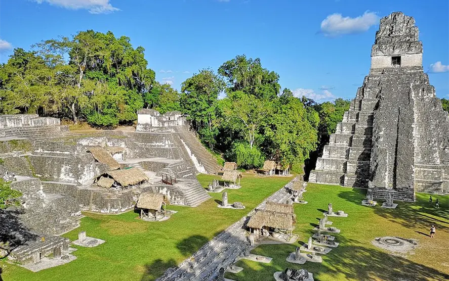 La antigua ciudad Maya de Tikal, ubicada en el municipio de Flores, departamento de Petén, constituye el asentamiento prehispánico más extenso en Guatemala, cuya población pudo haber alcanzado los 100,000 habitantes durante su época de mayor esplendor. Tikal cuenta con alrededor de 5,000 edificios prehispánicos en un área de aproximadamente 16 km², de los cuales únicamente el 5% se encuentra restaurado y habilitado para su visitación. La ciudad representa una antigua capital que dominó un vasto territorio durante el período Clásico. El nombre de Tikal significa Ciudad de las Voces. El Parque Nacional Tikal fue creado en 1955 con una extensión de 575.86 km² (55,005 ha).