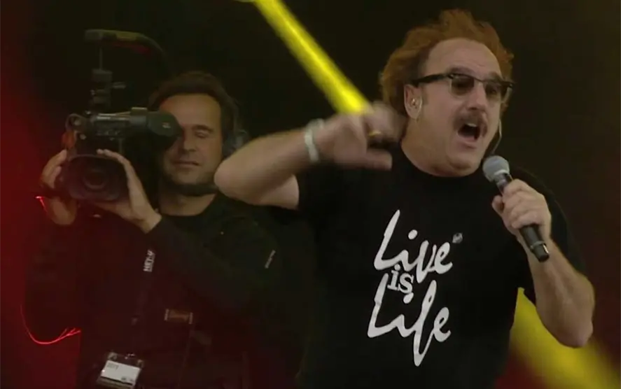 La experiencia de “Live is life” se completa con un videoclip ochentero que muestra al cantante de bigotes y pelo enrulado lanzando varias piruetas antes de cantar. Mientras tanto, unas 4 mil personas corean esa frase tan pegadiza como memorable. Es una fiel imagen de todo lo que solía acompañar a un recital de la vieja normalidad.