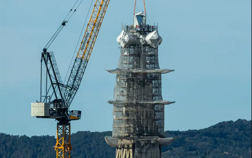 La enorme cruz, de cerámica blanca, mide 17 metros de altura, como un edificio de cinco pisos, con los que la basílica ha alcanzado su altura máxima, 172.5 metros. Y todo en pleno Año Gaudí, este 2026, cuando se conmemora el centenario de la muerte del genial arquitecto, que se celebrará el 10 de junio con la inauguración y bendición de la torre de Jesús.