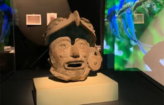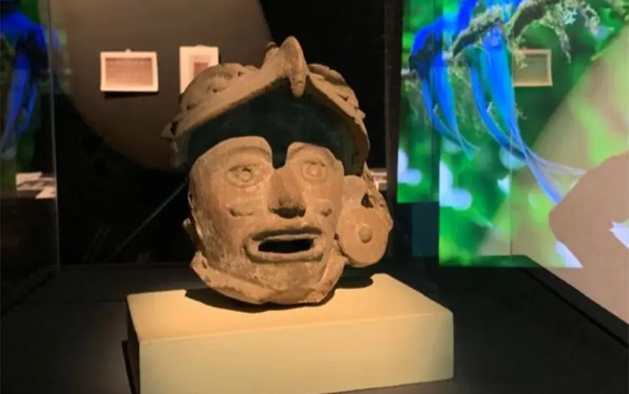 En el primer apartado, se exploran diferentes representaciones de dichos animales, a partir de 12 piezas prehispánicas de las colecciones del INAH, bajo resguardo del Museo Amparo, en la ciudad de Puebla. El conjunto arqueológico abarca un arco temporal de alrededor de 2 mil 500 años, desde el Preclásico Medio —un milenio antes de nuestra era— hasta el Posclásico Tardío, entre 1200 y 1500 d. C. “Las aves antes de México” es un módulo que exhibe vasijas en forma de pato y de loro, de sitios como Tlatilco, o de la tradición Tumbas de Tiro del occidente mexicano, y figurillas que simbolizan fuerza y vitalidad, como un rostro humano con casco de águila, de las culturas de la Costa del Golfo, o de un hombre ataviado con plumas, de la tradición Mezcala, que se asentó en el territorio que hoy es Guerrero.