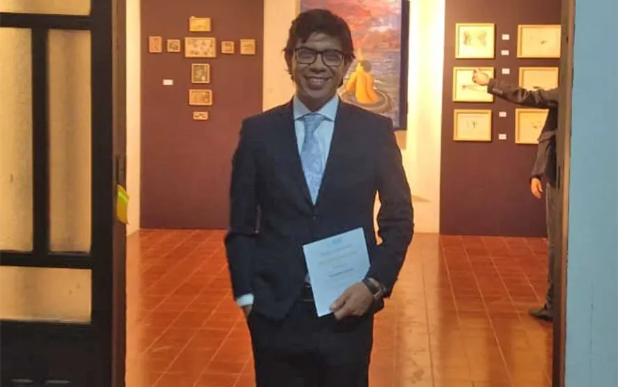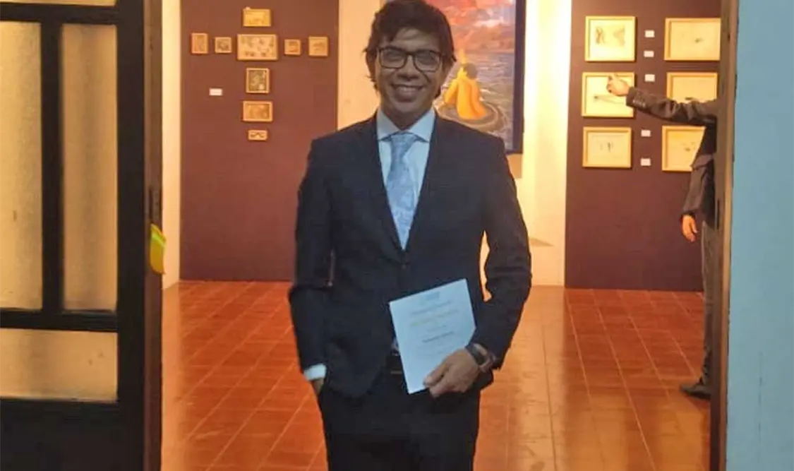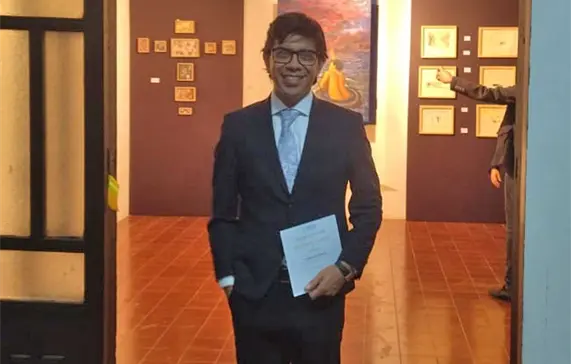El artista Guillermo Ruiz Long participa en una muestra pictórica que se exhibe en el centro cultural Carlos Jurado de San Cristóbal de Las Casas, Chiapas.