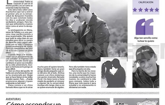 Toni un chico del pasillo 1B habla con una famosa de la que se ha enamorado por Skype que se hace llamar en las redes sociales Lauren. Pero… ¿Puede enamorarse alguien a quien realmente no has visto?