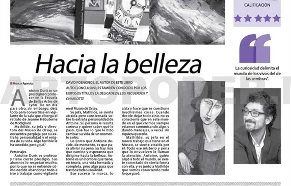 Lo único que Antoine decide, de momento, es que para aliviar su pena no hay más que camino y esperanza que dirigirse hacia la belleza. Antoine es un hombre que tiene, en teoría, una vida formada y completa, pero algo pasa que trastoca toda su realidad.