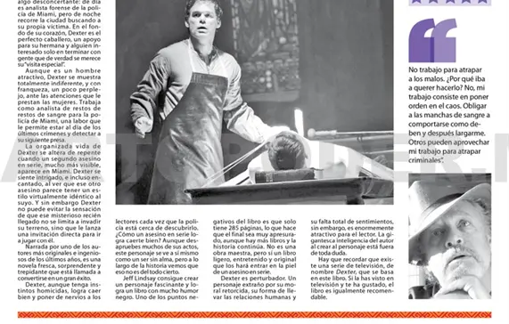 Hay que recordar que existe una serie de televisión, de nombre Dexter, que se basa en este libro. Si la has visto en televisión y te ha gustado, el libro es igualmente recomendable.