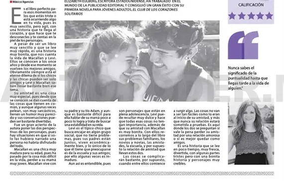 Aun así es entendible, pues son personajes que están en plena adolescencia. Levi puede resultar muy dulce y hace que todas esas cosas no tengan importancia, además de que su amistad con Macallan es muy bonita. Con ellos recorremos a lo largo del libro sus problemas familiares, los novios y novias, las amistades, la escuela, y por supuesto la relación de amistad que llevan estos dos.
