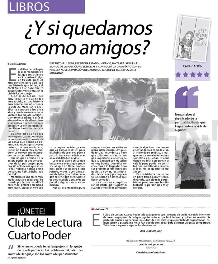 A pesar de ser un libro muy sencillo y que se lee muy rápido, es una historia muy bonita, que nos cuenta la vida de Macallan y Levi. Ellos se conocen a los once años y desde ese momento se vuelven los mejores amigos. Obviamente siempre está el eterno dilema de sí los chicos y las chicas pueden ser solo amigos y Levi y Macallan saben llevar bastante bien ese tema.