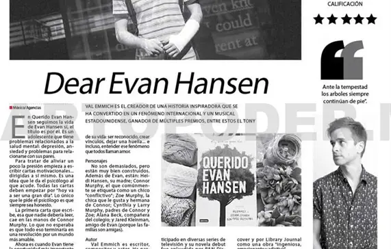 En Querido Evan Hansen seguimos la vida de Evan Hansen sí, el título es por él. Es un adolescente que tiene problemas relacionados a la salud mental: depresión, ansiedad y problemas para relacionarse con sus pares.