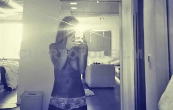 La imagen en blanco y negro parece haber sido tomada en su villa en Cavo Tagoo, Grecia. En la misma, aparece vestida únicamente con una pequeña pieza de lencería color blanco.