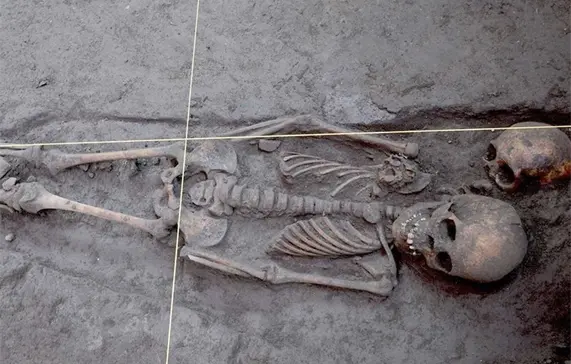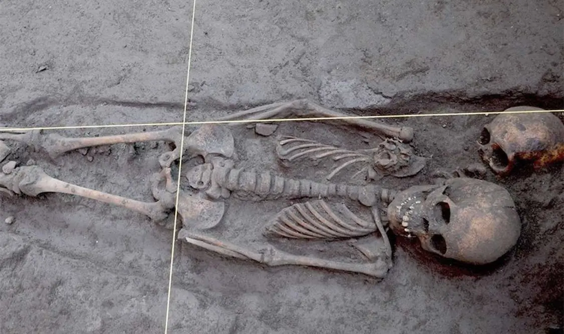 Los investigadores señalaron que los dos conjuntos habitacionales estaban conectados por un patio en el que se hallaron 17 entierros y uno de ellos destacó pues corresponde al de un individuo adulto “al que le fue ofrendado un bezote de obsidiana y una vasija de la loza del tipo Texcoco Bruñida, indicativos de que el personaje contaba con cierto estatus social, por lo menos, dentro de la familia o localidad”.