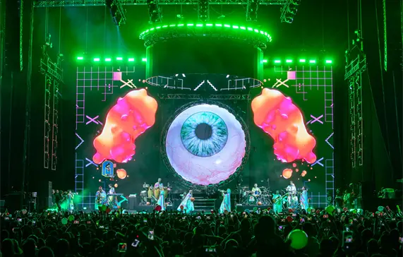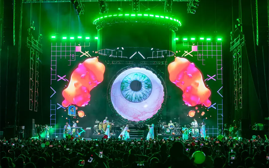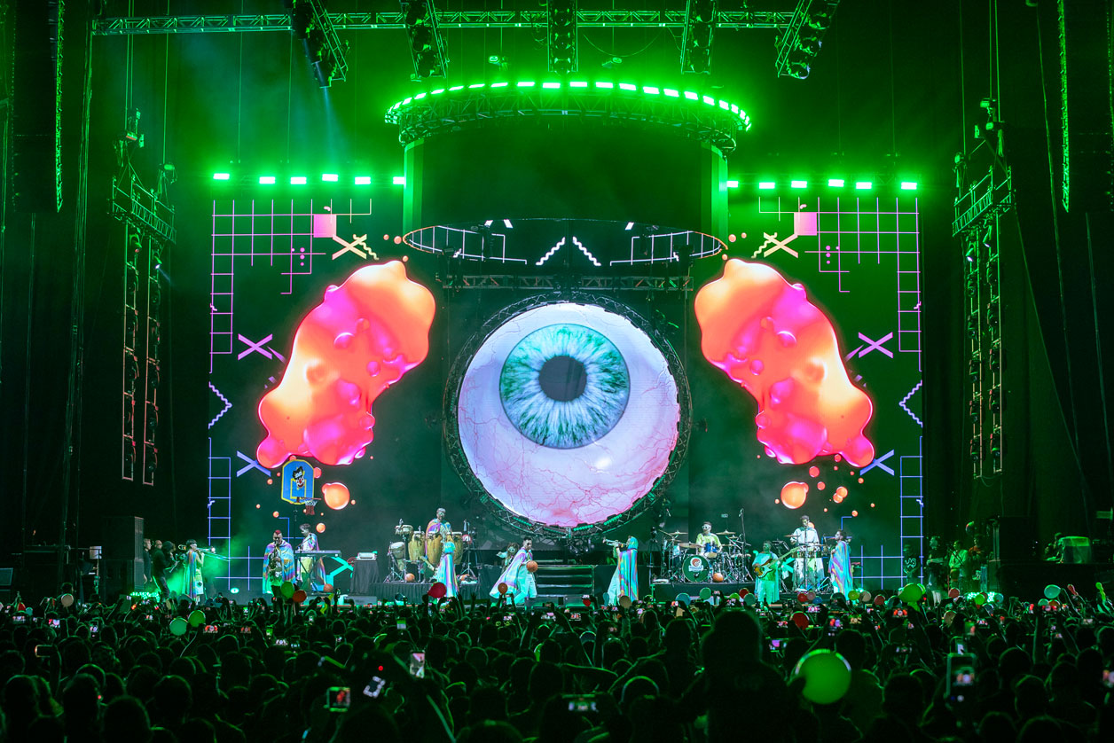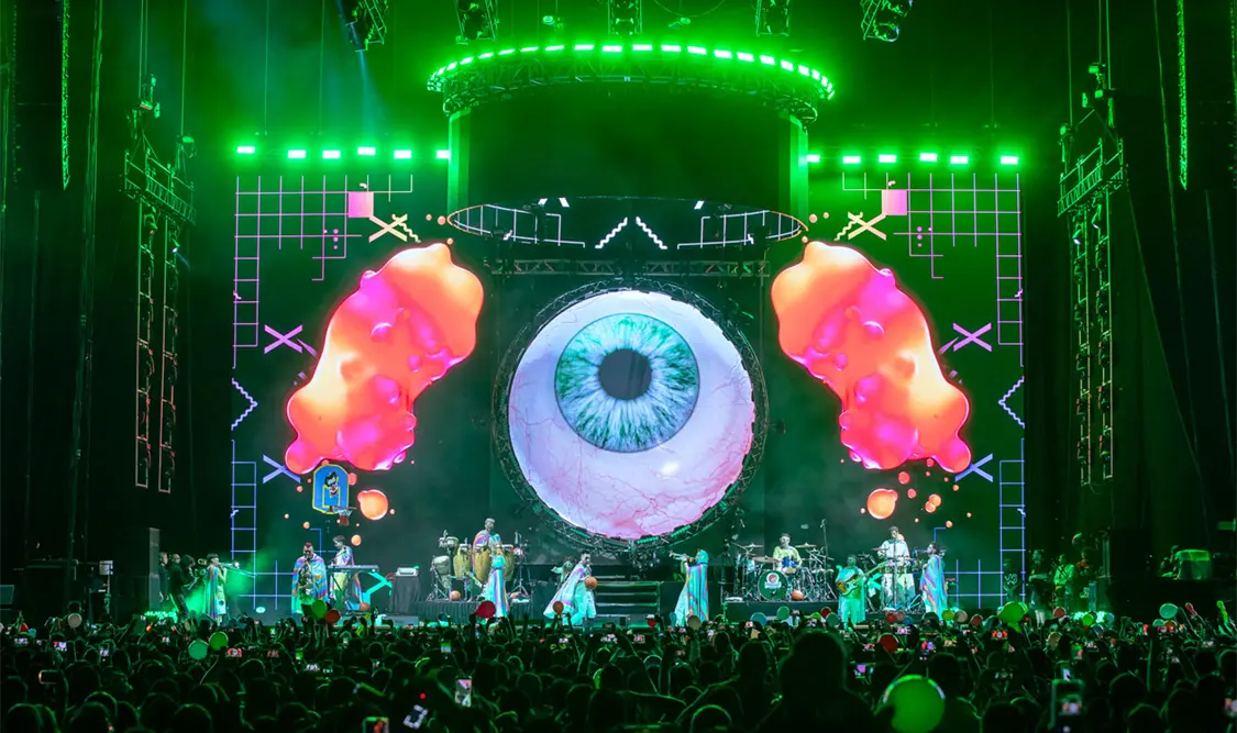 El show, que combinó música, acrobacias y bailarines, también contó con grandes invitados especiales. Mario Bautista se unió a la banda para interpretar “Todos locos”, mientras que La Sonora Santanera puso a bailar a todos con una versión especial de “Frijoles”.