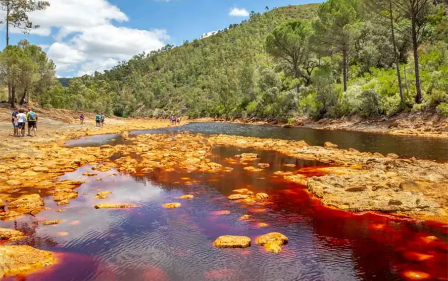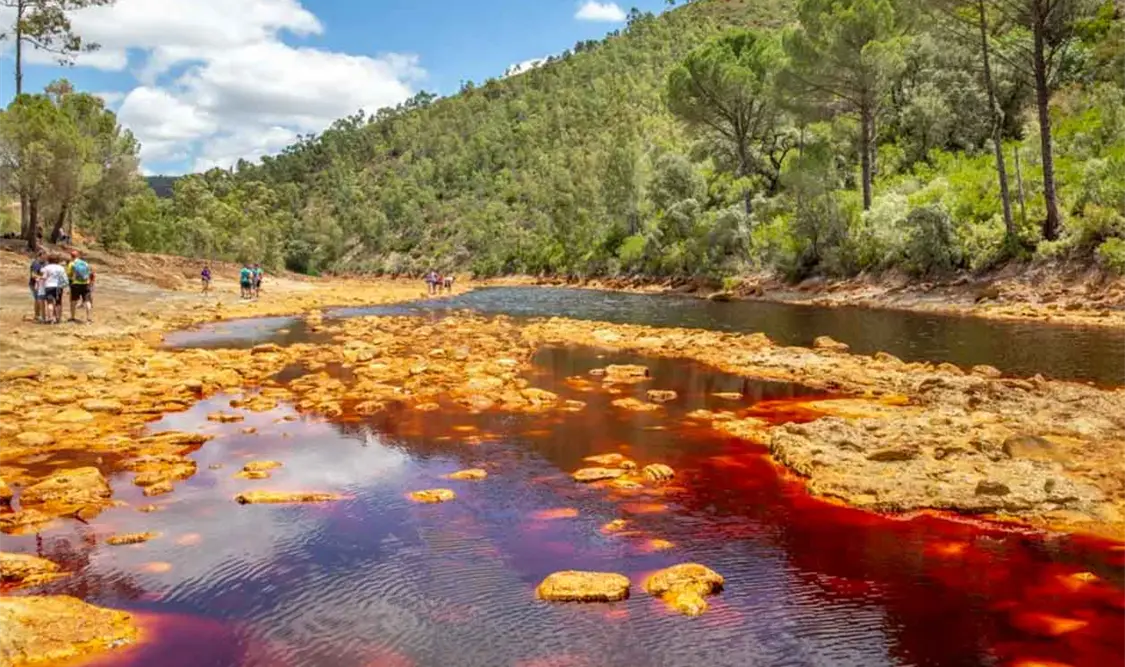 En la provincia de Huelva (España) nos topamos con el río Tinto, un nombre no escogido al azar. Este río de 100 kilómetros de largo discurre en rojo y sus orillas también parecen sacadas de otro mundo. ¿La causa? Una combinación de bacterias raras, un recuento bajo de oxígeno y la contaminación de la minería de oro, plata y cobre, algo que lleva ocurriendo desde el 3000 a. C. y que han otorgado esta coloración tan particular al río y su paisaje. Parece sacado del propio Marte.
