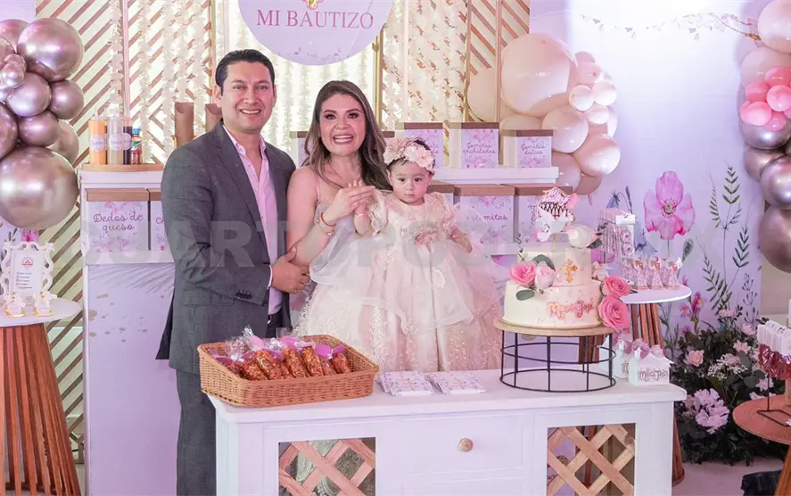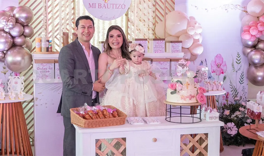 Con mucha alegría fue como los papás de María José decidieron organizar una elegante fiesta con motivo del bautizo de su pequeña. Sus familiares los acompañaron en la ceremonia religiosa, para después reunirse en conocido salón de fiestas donde disfrutaron un delicioso menú y compartieron momentos muy amenos con los anfitriones