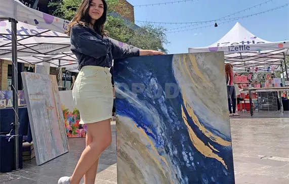 Comparte que también se inclina por el arte figurativo, pero es en el campo de la abstracción donde se siente más cómoda. “Me gusta más el arte abstracto, porque te pueden salir cosas súper espontáneas y padrísimas. Es más divertido porque es de tirar pintura y mancharte, y eso es algo que me encanta. En cambio lo figurativo es algo que también me gusta, pero su creación es más de tener paciencia y de ser más ordenado”, explica.