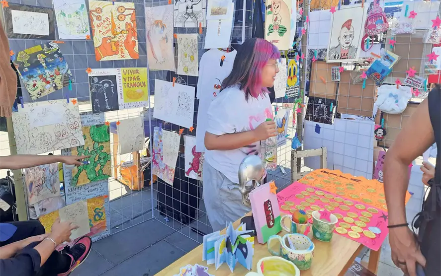 En otro de los puestos, Biquini Wax en colaboración con Biblioforever ofreció tatuajes, pero también organizó una rifa con boletos de 300 y 500 pesos, donde los premios eran obras de arte y algunas otras chácharas —desde Hello Kitty hasta una ilustración de “AMLO punk”—, todo con el fin de reunir fondos para mudarse de sede.
