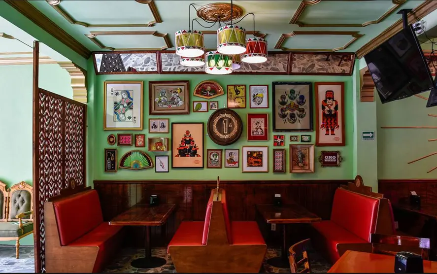 Ubicado en una casona del centro de Coyoacán, Masiosare mezcla referencias visuales de la Revolución Mexicana y la nostalgia porfiriana con una atmósfera relajada. Sillones de cuero, mesas amplias y una barra de coctelería clásica construyen un espacio pensado para quedarse largo rato, comer bien y convivir sin prisas.
