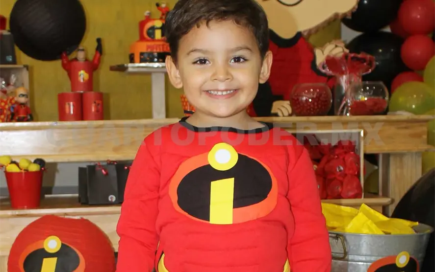 Cuatro añitos de vida cumplió el pequeño Mateo, a quien le organizaron una divertida fiesta con la temática de su película favorita, Los Increíbles, por lo que portó el traje de uno de los personajes. Acompañado de sus mejores amigos del colegio, el pequeño se divirtió jugando, rompiendo piñatas y comiendo golosinas