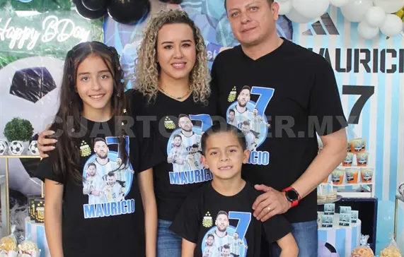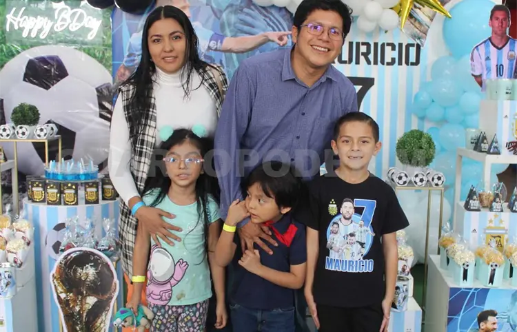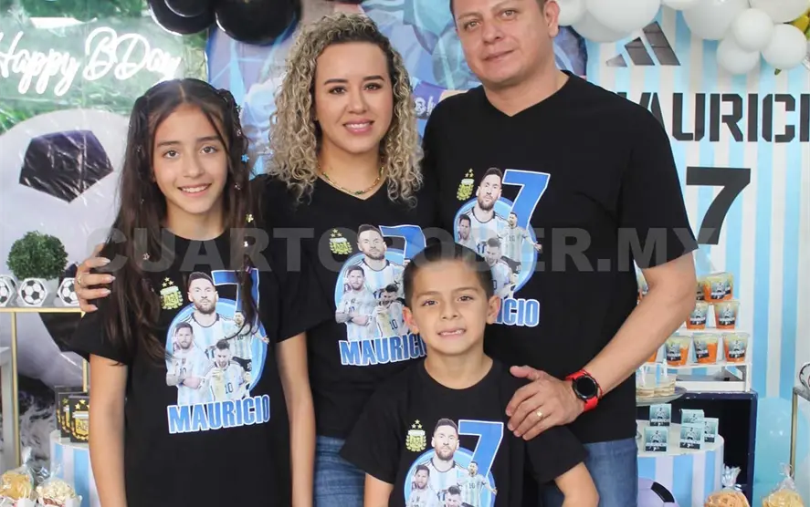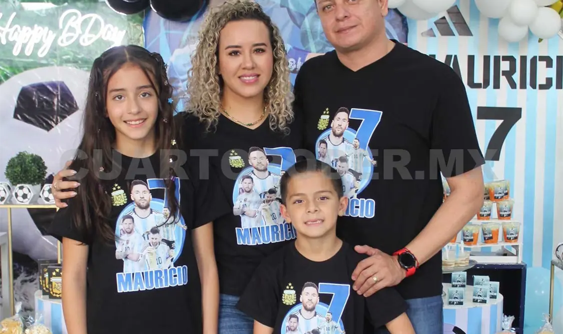 Con la temática de su jugador de futbol favorito, Lionel Messi, fue como celebraron los siete años de vida de Mauricio. En conocido salón de fiestas, sus amigos lo recibieron con aplausos. Después, disfrutaron junto a él los divertidos juegos y el show, además de cantarle “Las mañanitas” frente al pastel para que pidiera su deseo especial