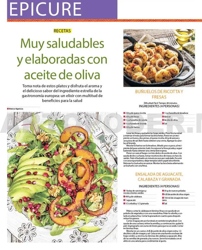 Muy saludables y elaboradas con aceite de oliva.Toma nota de estos platos y disfruta el aroma y el delicioso sabor del ingrediente estrella de la gastronomía europea: un elixir con multitud de beneficios para la salud.