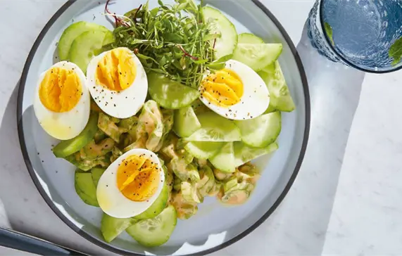Realmente nos saca del apuro cuando no sabemos qué preparar a la hora del desayuno o la cena. Es un ingrediente que no pueden faltar en nuestra despensaENSALADA DE HUEVO COCIDO CON PEPINO Y CACAHUATES