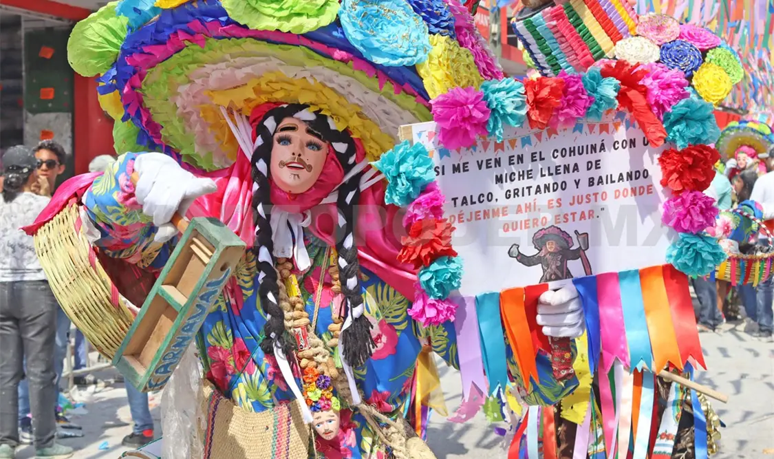Pedazos de papel de todos colores surcan el aire. El ambiente inundado del polvo blanco del talco deja a las personas con el cabello y la piel cenizos. El ruido ensordecedor de las matracas invita a vivir la fiesta de la carne en el marco del Carnaval Zoque Coiteco 2025.