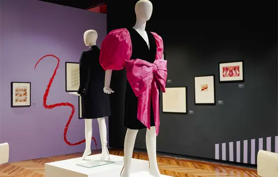 En la exhibición, curada por Anne Morin, hay más de 400 piezas, como ilustraciones, fotografías y videos, además de obras de Andy Warhol y vestidos de Yves Saint Laurent, con quienes colaboraron.