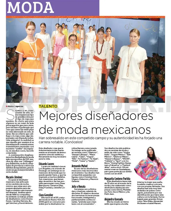 A continuación desglosamos a los diseñadores de moda más reconocidos del DF; muchos de ellos son “chilangos” por definición, es decir, adoptados de provincia y otros son defeños de nacimiento, pero lo cierto es que la mayoría radica en la ciudad.Macario Jiménez