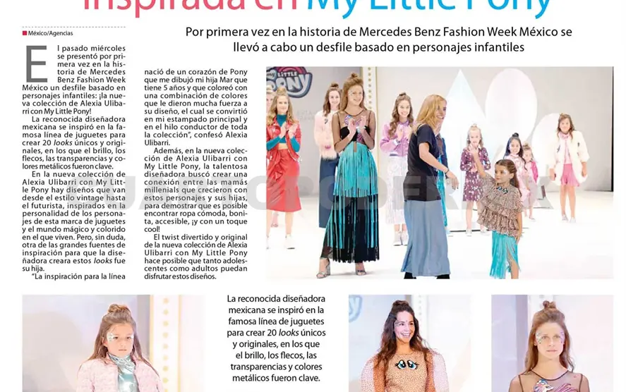 El pasado miércoles se presentó por primera vez en la historia de Mercedes Benz Fashion Week México un desfile basado en personajes infantiles: ¡la nueva colección de Alexia Ulibarri con My Little Pony!