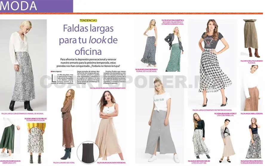 Los días de playa, mar y arena se han evaporado en un chasquido y sin darnos cuenta hemos vuelto a la ciudad, al asfalto y a nuestras largas jornadas de trabajo. Nos hemos ido de compras para poner nuestro armario a punto este septiembre y adaptarlo a la vuelta a la rutina; y si una prenda es un clásico a lo largo de los meses de entretiempo es la falda larga.