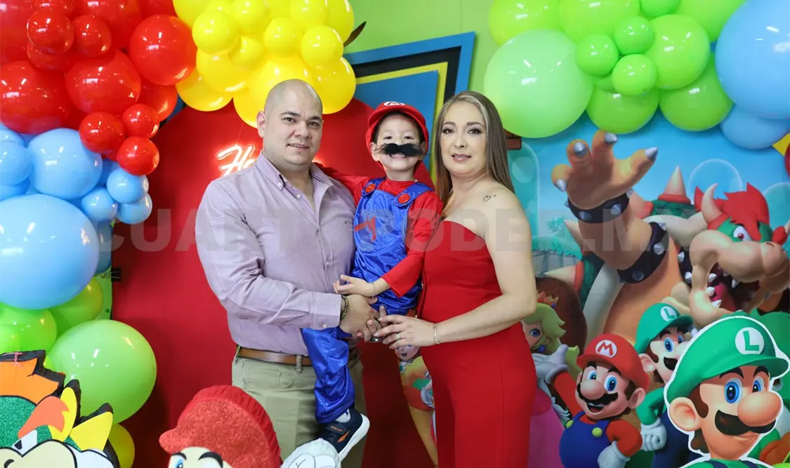 Una gran fiesta con la temática de Mario Bros. disfrutó el pequeño Salvador al celebrar su cumpleaños número 3. Todos sus familiares acudieron para acompañarlo y felicitarlo en su gran día. Los mas pequeños jugaron hasta el cansancio, para después deleitarse con los ricos bocadillos elegidos por los anfitriones