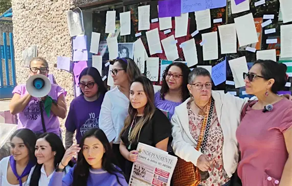 Nutrida por el color morado y ambientada con canciones feministas, la protesta de la colectiva de alrededor de 20 mujeres fue una manifestación pacífica, pero exigente, quieren a Taibo fuera de las decisiones de la política cultural mexicana. Lo plantearon con lecturas de poemas, con pancartas enormes en las que le anotaron los nombres de escritoras potentes que tiene la literatura mexicana: Elena Poniatowska, Elena Garro, Cristina Rivera Garza, Pita Amor; con fotografías de narradoras y poetas que pegaron en las puertas de la librería Víctor L. Urquidi, con un tendedero con los nombres de escritoras, a las que también les pasaron lista y ante cada nombre gritaban a coro: “Horrible”. También le metieron las hojas con los poemas leídos a Taibo a través de la puerta de la librería.