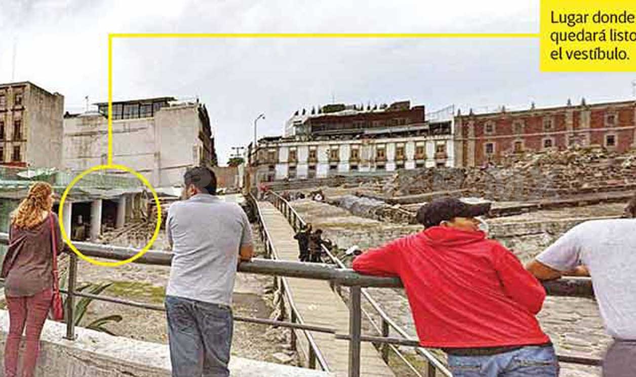 La eterna construcción del nuevo vestíbulo del Museo del Templo Mayor requerirá medio año más. El área, cerrada a la circulación desde 2010 y desde donde ahora se podrán apreciar los vestigios arqueológicos de la antigua Tenochtitlán, tal como la vieron los aztecas, se encuentra al 95 % de avance, pero todavía requerirá “algunos meses, unos seis”, aseguró Enrique Ortiz Lanz, coordinador de Museos y Exposiciones del Instituto Nacional de Antropología e Historia (INAH).