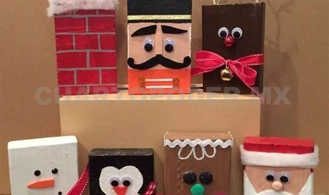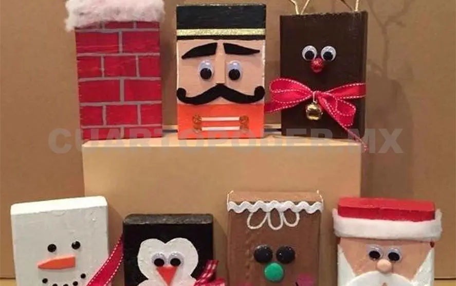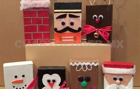 Escoge de las siete cajas cual será Papá Noel, el reno, el pingüino, el muñeco de nieve, el pastel, la chimenea y el cascanueces, posteriormente decoradas a tu gusto.
