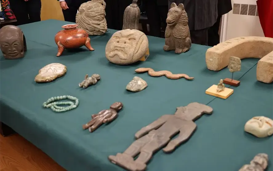 La justicia neoyorquina anunció el pasado viernes la devolución a México de 30 piezas patrimoniales, valuadas en medio millón de dólares, que fueron incautadas en el marco de investigaciones contra redes de saqueo y tráfico de patrimonio cultural latinoamericano.