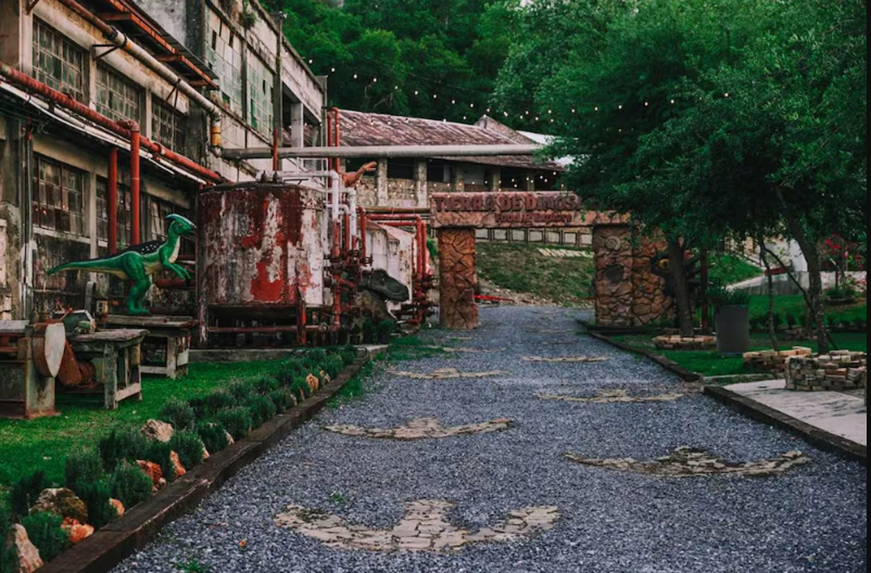 La Fábrica El Porvenir fue intervenida para la creación de Tierra de Dinosaurios, el nuevo museo temático de Nuevo León. Desde la entrada hay senderos con huellas, un arco de bienvenida con un huevo eclosionando, jardines y espacios al aire libre que recrean los paisajes de aquella era e incluso réplicas animatrónicas, entre las que figura un tiranosaurio rex de 25 metros de largo, uno de los más grandes de Latinoamérica.