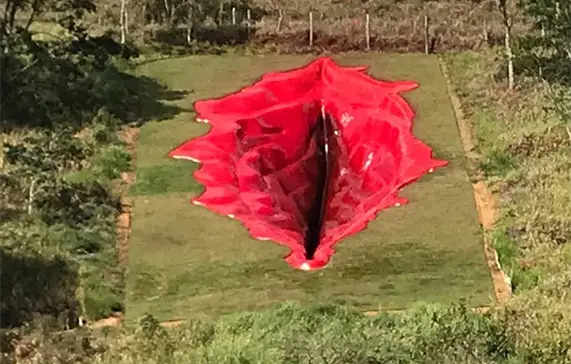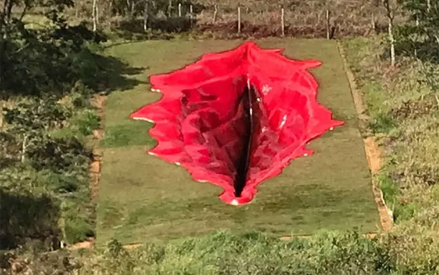 En el Brasil de Bolsonaro, esa escultura de una vulva roja, dentro de una verde montaña, de 33 metros de largo, 16 de ancho y 6 de profundidad, construida a lo largo de 11 meses, formada por capas y visible para todos, ha sido objeto de críticas y alabanzas. Diva es una obra poderosa, bella, histórica y única.