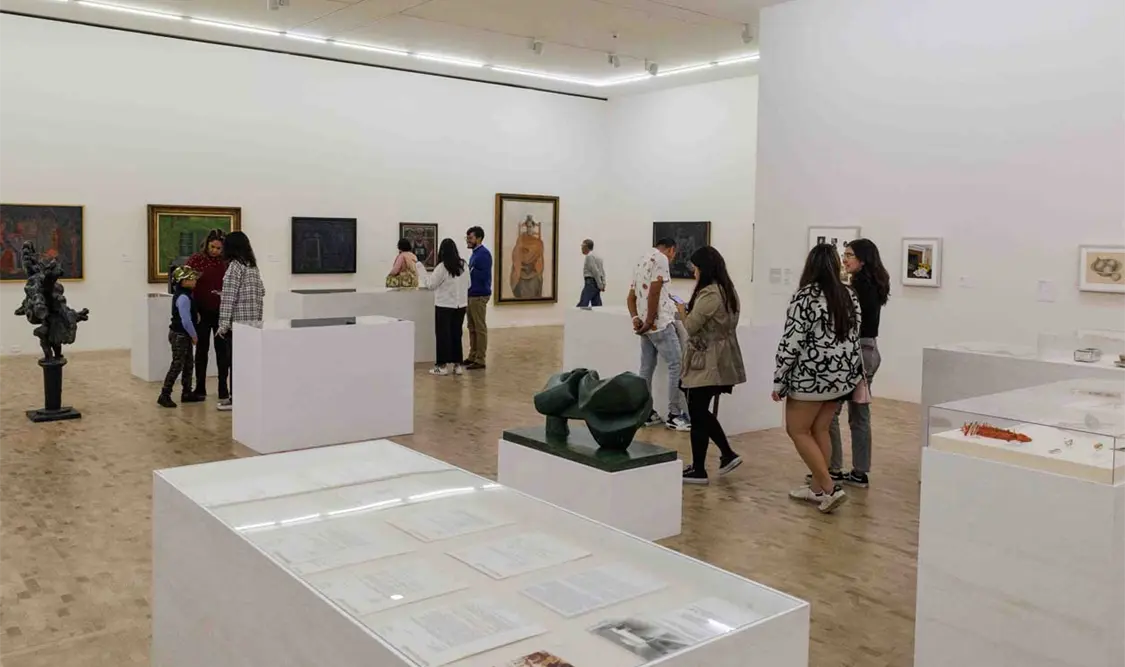 La exposición plantea un recorrido por las distintas etapas de vida de Olga y sus intereses; el recorrido es dinámico con brincos temporales. Se exhiben poco más de 100 piezas, que van desde obras de arte del propio Tamayo y artistas internacionales, así como documentos del archivo del museo y objetos personales de la promotora, que se muestran al público por primera vez.