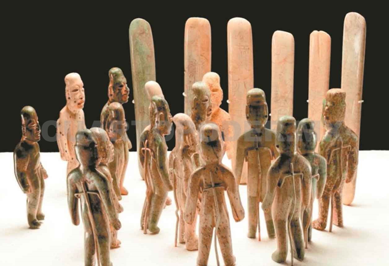 De las 300 piezas destacan el Adolescente Huasteco, una escultura que fue descubierta en el municipio potosino de Tamuín; la Ofrenda 4 de La Venta, compuesta por 16 figurillas antropomorfas y seis hachas que representan estelas, y la Mujer Escarificada de Tamtoc (San Luis Potosí), una pieza atípica hecha en arenisca.