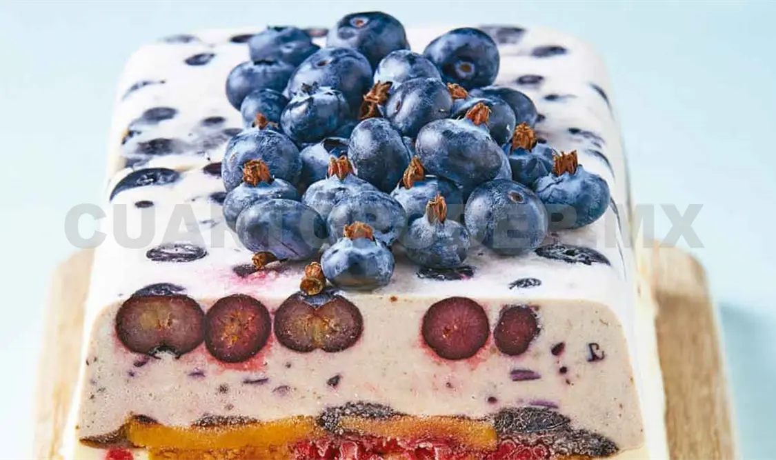 2. En un refractario de panqué coloca la mezcla de durazno primero, cubre con la mermelada y frambuesas, agrega la mezcla de blueberries y congela durante mínimo 2 horas, y finalmente puedes compartir con tus seres queridos.Tiempo: 2 hora y media