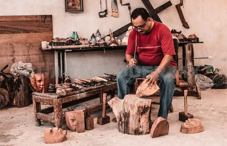 Mi madre me preguntó si quería que me inscribiera al taller de máscaras para así matar el ocio y que no me fuera de vago. Así fue como ingresé en el taller de máscaras que se daba en el Museo de la Laca. Dentro de la enseñanza de mi maestro Antonio López Hernández, al inicio nos ponía a observar cómo se manejan las herramientas, cómo hacía los trazos, y después de unos meses nos puso a practicar con máscaras pequeñas hasta llegar a hacer máscaras más grandes y así llegar al proceso del acabado.