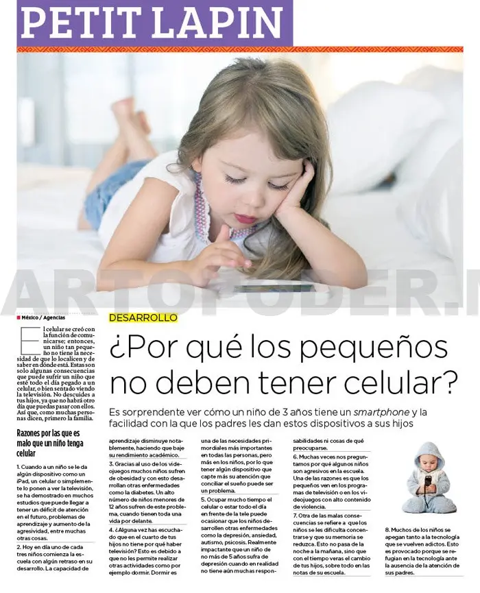 5. Ocupar mucho tiempo el celular o estar todo el día en frente de la tele puede ocasionar que los niños desarrollen otras enfermedades como la depresión, ansiedad, autismo, psicosis. Realmente impactante que un niño de no más de 5 años sufra de depresión cuando en realidad no tiene aún muchas responsabilidades ni cosas de qué preocuparse.